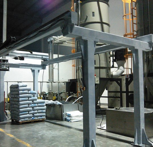 2、占地面积少。有利于客户厂房中生产线的布置,并可留出较大的库房面积。码垛机器人可以设置在狭窄的空间,即可有效的使用。
